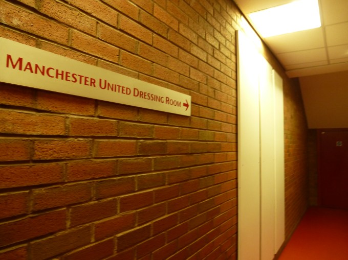Стигаме до светая-светих на стадиона -съблекалнята на Манчестър Юнайтед. Представете си всички играчи, треньори, поддържащ състав, спонсори и разплакани от вълнение по време на тур фенове, които някога са дишали в това помещение. Години, десетилетия назад. Тук е момента да цитирам Йовков и да кажа за тези стени: „Ако можеха да говорят“…
