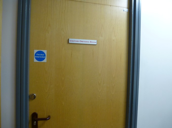 Ето я вратата на съблекалнята за гости, в нея не пускат да се влиза, защото няма какво да се гледа:
