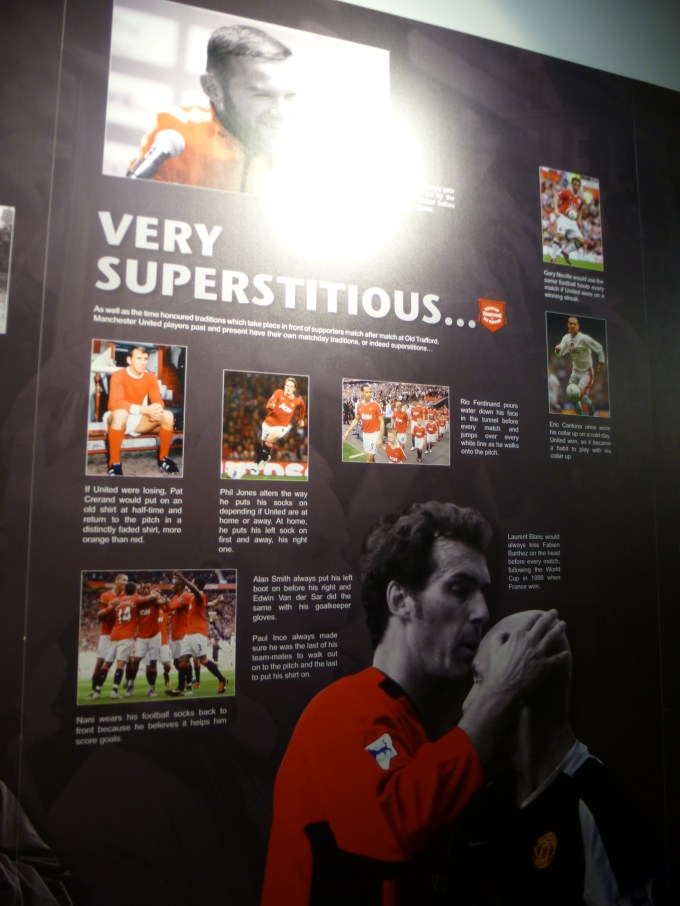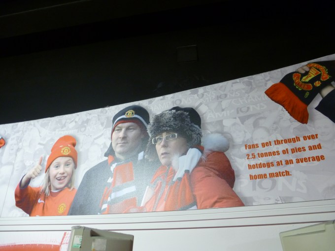 Феновете са тези, които правят магията възможна. Има много стендове, посветени на тях. Този плакат например каза, че по време на домакински мач феновете изяждат около 2.5 тона пайове и хот-дог. Как са толкова дисциплинирани, за разлика от средния английски фен на международно първенство? Тук са членове на клуб и при неизпълнение на клаузата за добро държание всеки е заплашен от забрана да стъпва до живот на мач на MU. До сега не е имало такъв случай, правилото си важи и всички внимават с поведението си тук дори повече, отколкото на улицата. За разлика от това феновете на Англия извън острова не са заплашени от лишаване от поданство или друга строга мярка, освен евентуално от някаква глоба, ако съда на другата държава е издал подобна присъда.