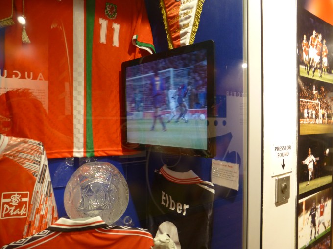 Много са стендовете с история. В този например има топки и футболни принадлежности от различни периоди на последните повече от сто години.
