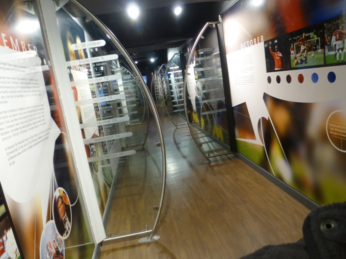 -Значи тук е полетяла обувчицата след ритника на Сър Алекс към челцето на Бекъм? – обръщам се засмяно към Греъм, а той се чуди да се засмее или да се нацупи в отговор.