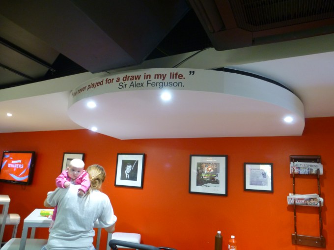 „Никога не съм играл за равен в живота си“ казал Фъргюсън и те веднага го написали тук. Аз пък съм доволна на равен, надявам се всички да успеем в живота. Вероятно за това не ме канят за треньор тук. Не е трудно и да се познае, че по необяснима и за мен причина Фъргюсън не ми е любимец. Малката от снимката обаче е истинска бъдеща фенка, гледаше с голямо любопитство червения ми скутер. За такива малки фенове има и малки екипи в магазина.