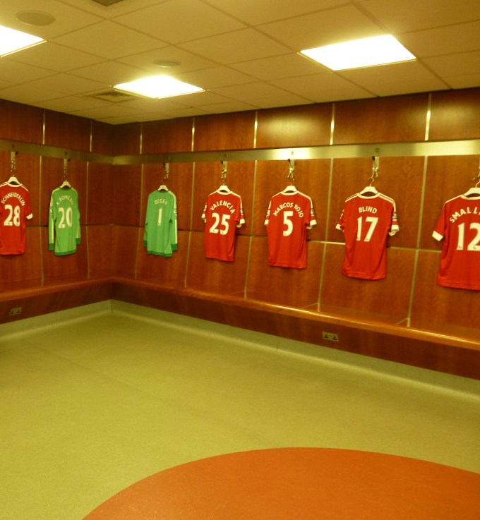 Няма нищо луксозно тук, дори телевизора зад вратата е съвсем приличен размер, а за таблото на треньора да не говорим. Има по-модерни в гимназиите из Англия. Очевидно така им харесва и го пазят заради традицията най-вече. Понякога такива неща се пазят и от суеверие – искат да си запазят късмета, който винаги са имали, използвайки именно това табло.