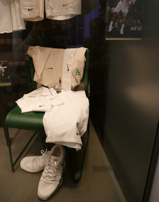 Екипът на Роджър Федерер в музея. Там са екипите на повечето известни играчи. В първата част ви показах пътя, по който всички минават, за да стигнат до клуба. Тази втора част е посветена на музея и сувенирния магазин, а третата – на кортовете и сградите на клуба, в които са телевизионните студия, залите за прес-конференции и офисите за осребряване на чековете.