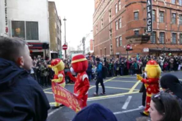 Посрещане на годината на Жълтото Земно куче в Лондон, 17.02.2018, по традиция най-многолюдното извън Китай.