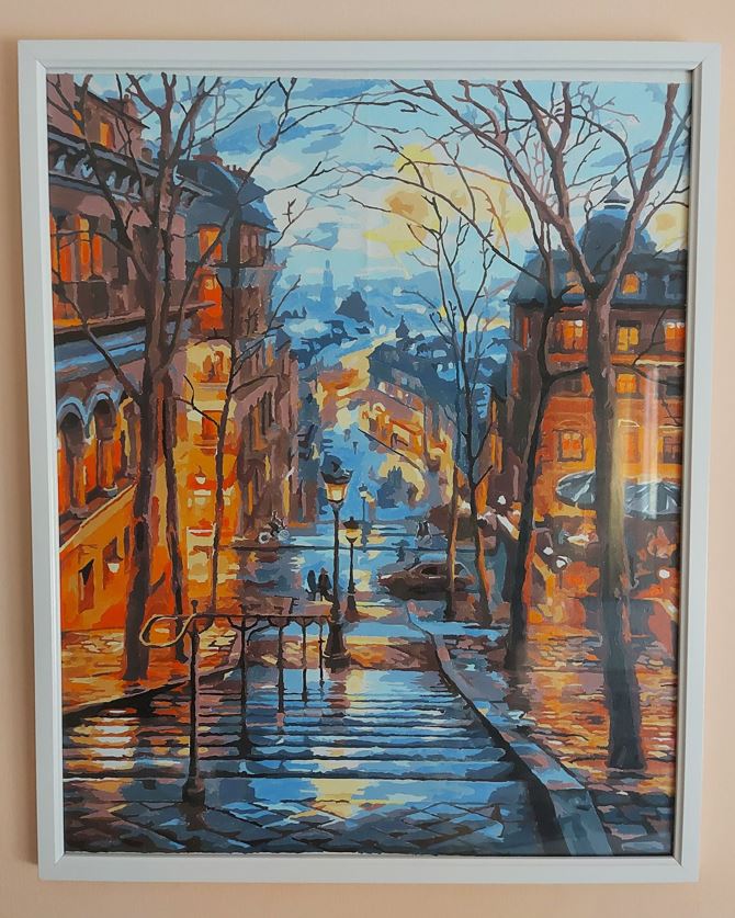 Във времето на тези 33 месеца творих, но в друг жанр. Ще ви покажа някои от творенията си. Занимавах се с рисуване и понеже не мога да рисувам, рисувах картини по номера (целенасочено повторение). Изключително успокояващо, приятно и непретенциозно хоби. Вложих и собствен щрих във всяка картина. Някои рамкирах и окачих, други подарих. Рисуването освобождава време за слушане. Слушам аудиокниги, подкаст, любими youtube канали, някои радио-предавания.